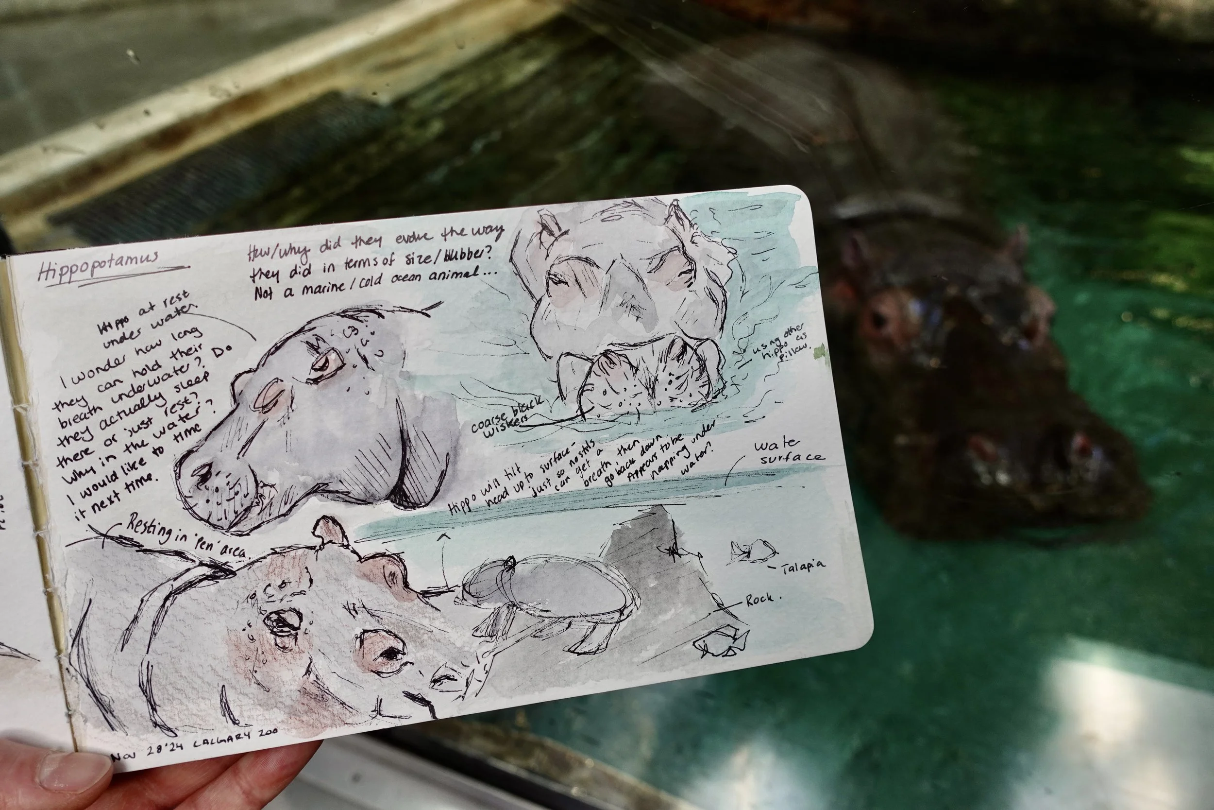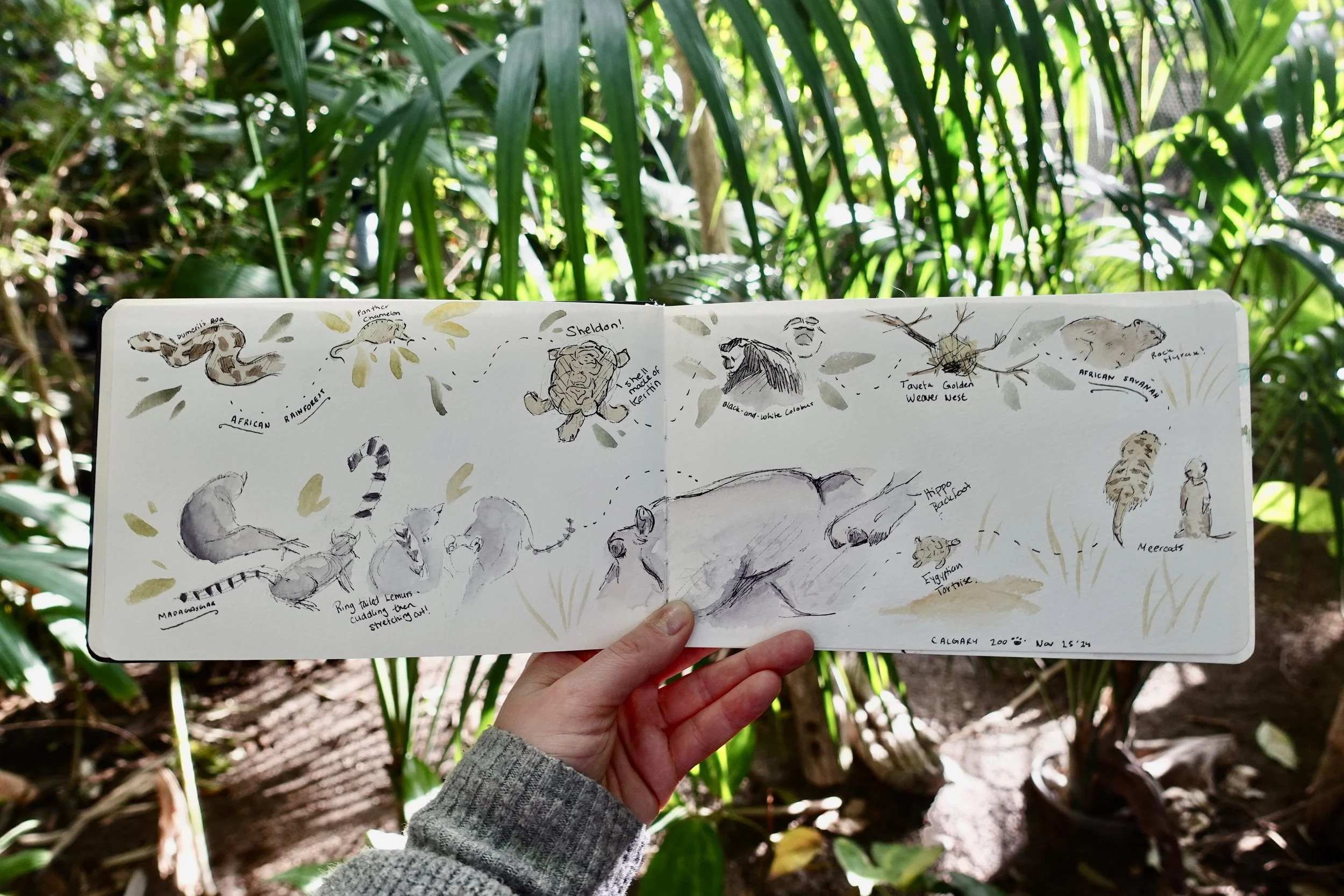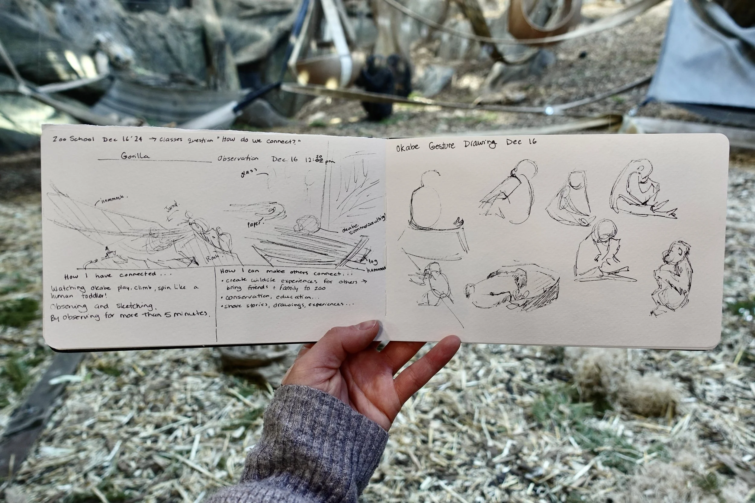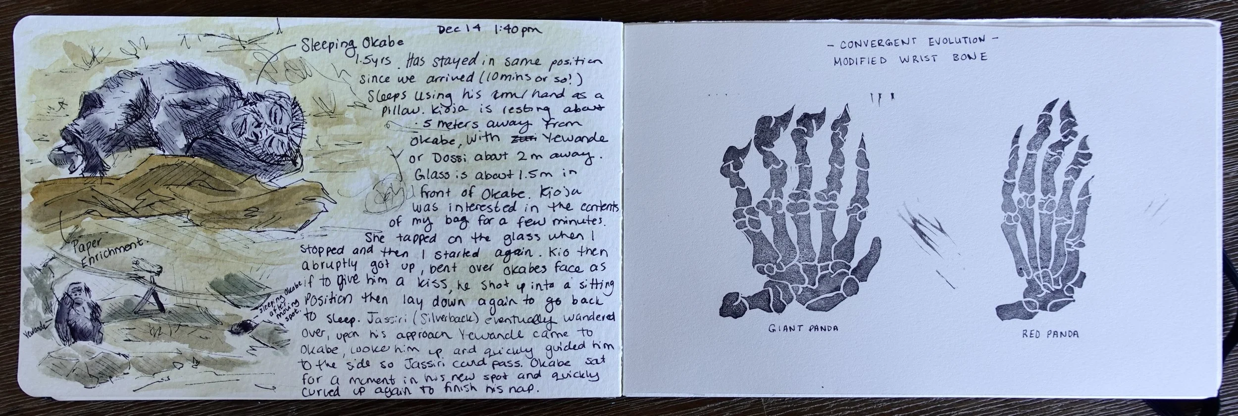 Left: Gorilla Sketch at Calgary Zoo. Right: Lino Print of Giant Panda and Red Panda Hand Exemplifying Convergent Evolution